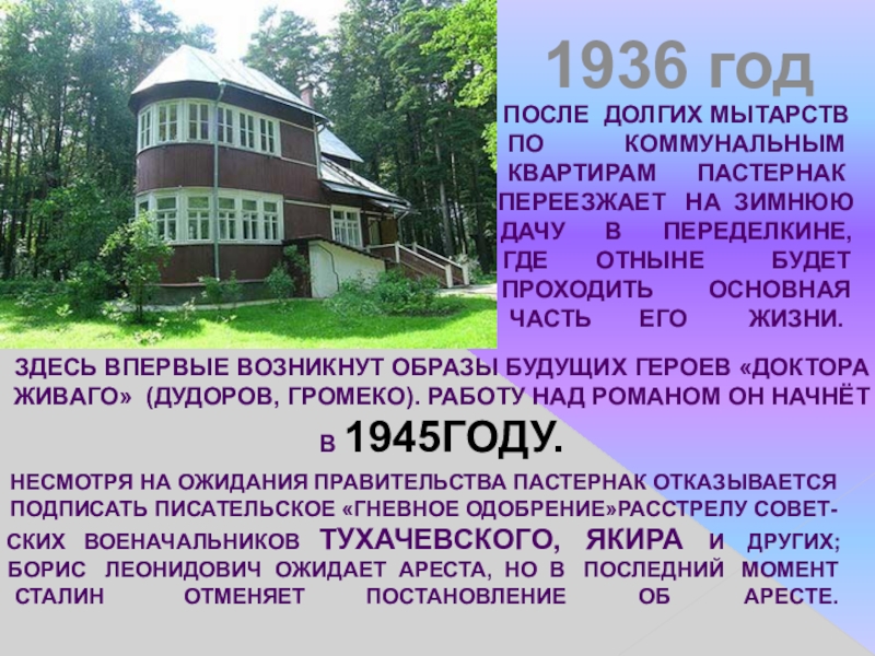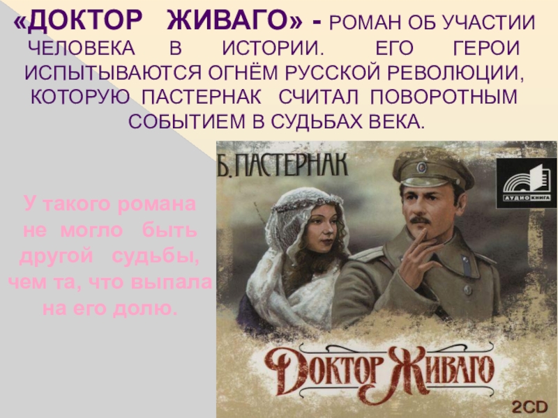 ЖИВАГО» (ДУДОРОВ, ГРОМЕКО). РАБОТУ НАД РОМАНОМ ОН НАЧНЁТ