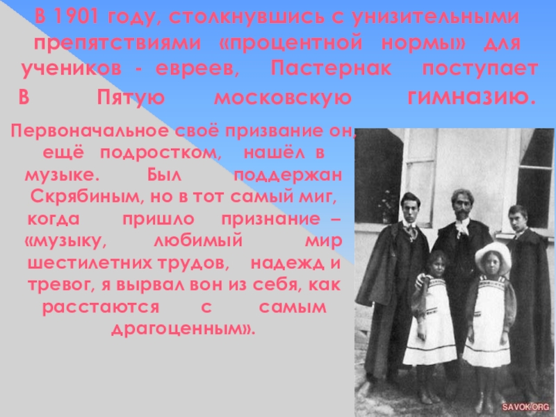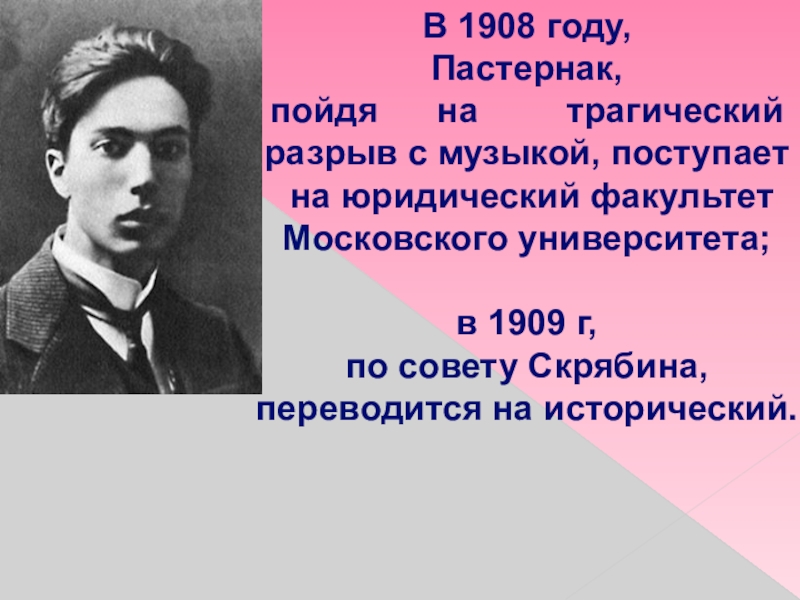 Первоначальное своё призвание он, ещё подростком, нашёл в музыке. Был поддержан Скрябиным, но в тот самый миг, когда пришло признание –