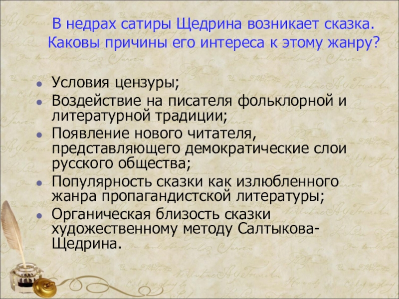 Органическая близость сказки художественному методу Салтыкова-Щедрина.