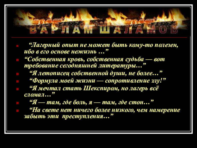 Слайд 23 “Лагерный опыт не может быть кому-то полезен, ибо в