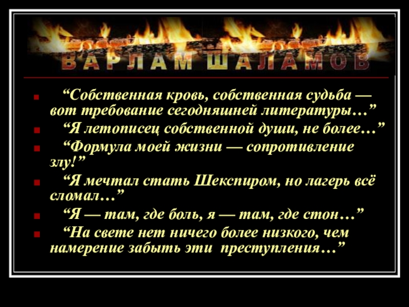 Слайд 25 “Собственная кровь, собственная судьба — вот требование сегодняшней литературы…”