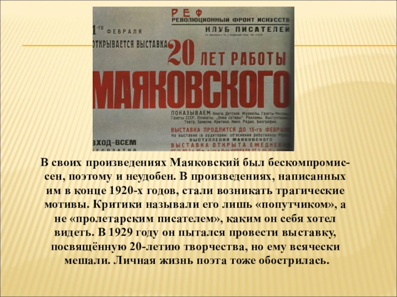 Слайд 15В своих произведениях Маяковский был бескомпромис-