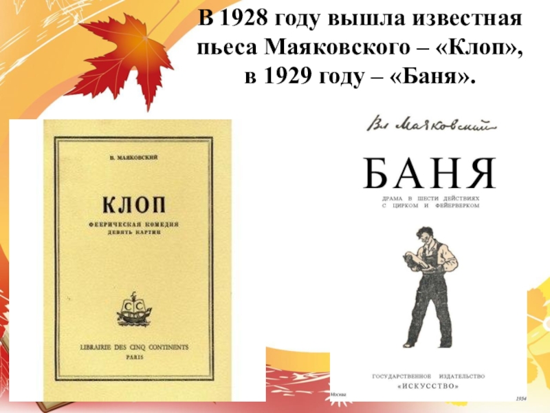 В 1928 году вышла известная пьеса Маяковского – «Клоп», в 1929 году – «Баня».