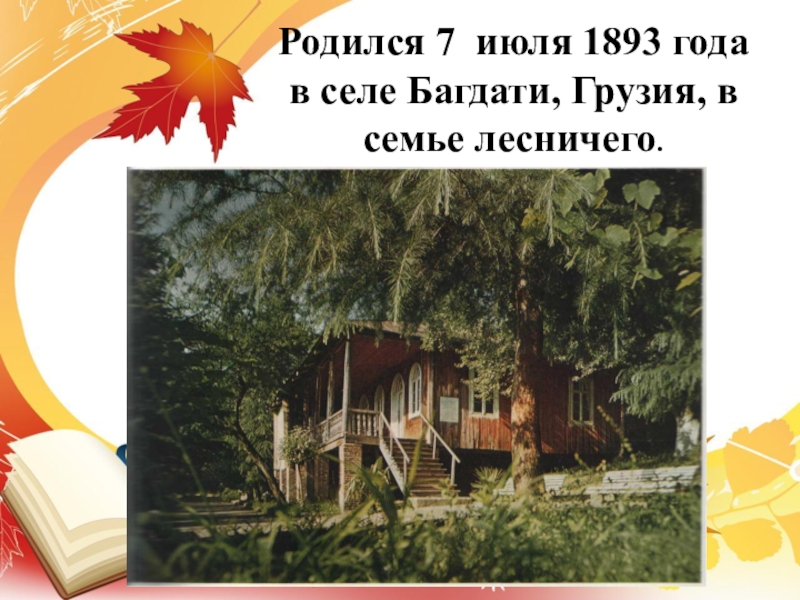 Слайд 2Родился 7 июля 1893 года в селе Багдати, Грузия, в семье