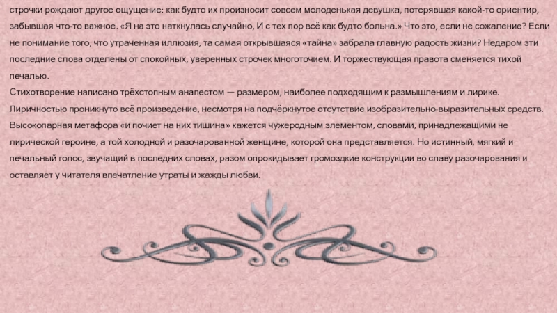 Слайд 25как свобода от иллюзий. В этом месте голос лирической героини звучит