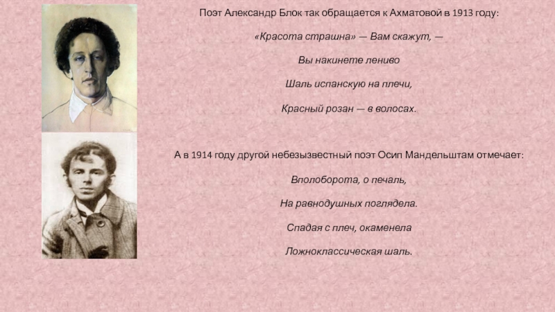 Слайд 30Поэт Александр Блок так обращается к Ахматовой в 1913 году: