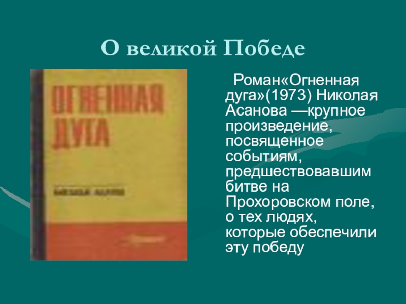 Роман«Огненная дуга»(1973) Николая Асанова —крупное произведение, посвященное событиям,