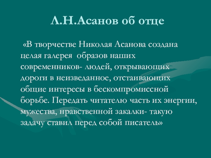 Слайд 28Л.Н.Асанов об отце
