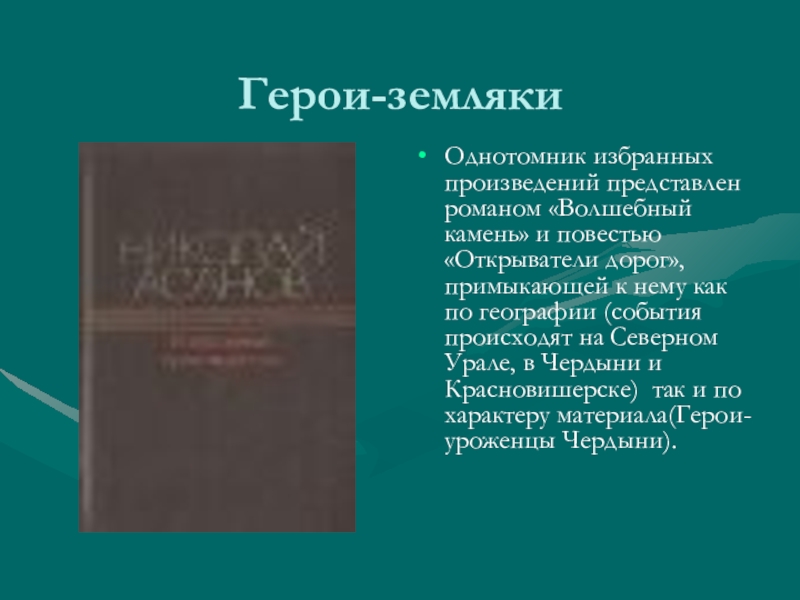 Однотомник избранных произведений представлен романом «Волшебный камень» и повестью «Открыватели дорог»,
