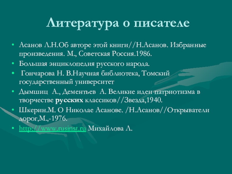 Асанов Л.Н.Об авторе этой книги//Н.Асанов. Избранные произведения. М.,