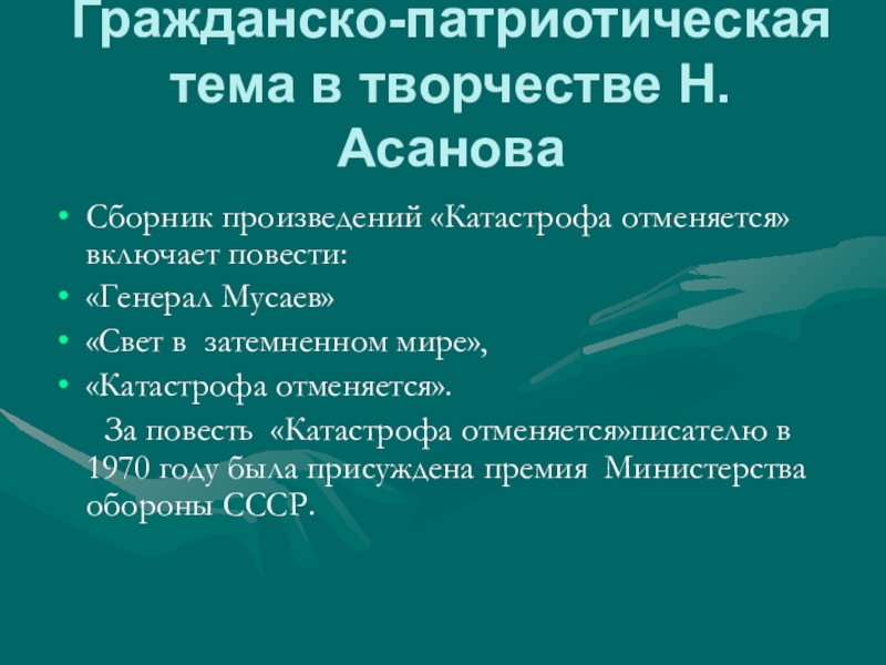 Слайд 16Гражданско-патриотическая тема в творчестве Н.Асанова