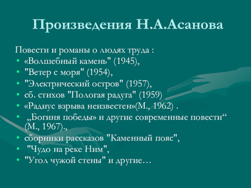 Слайд 11Произведения Н.Асанова