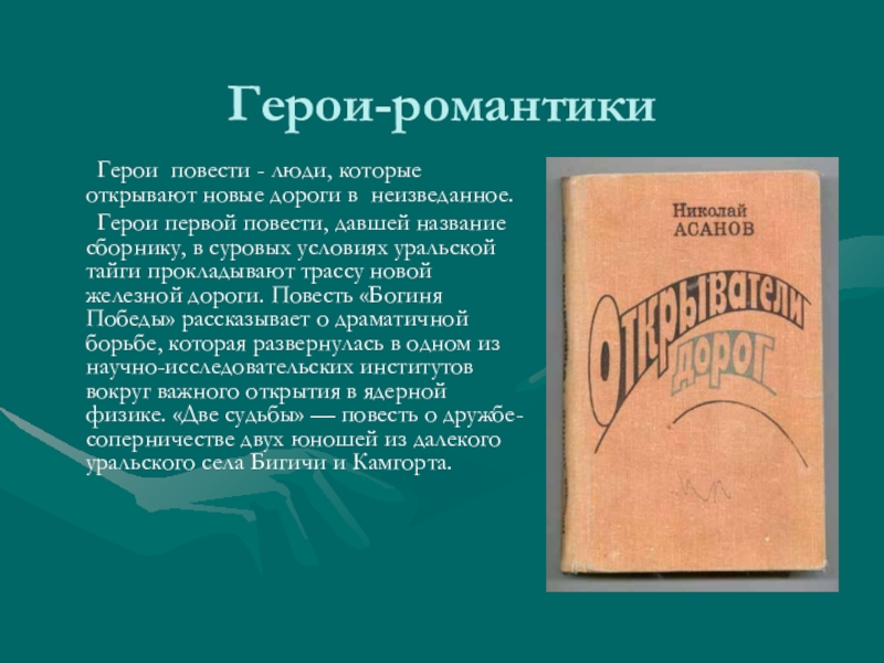 Герои повести - люди, которые открывают новые дороги в неизведанное.