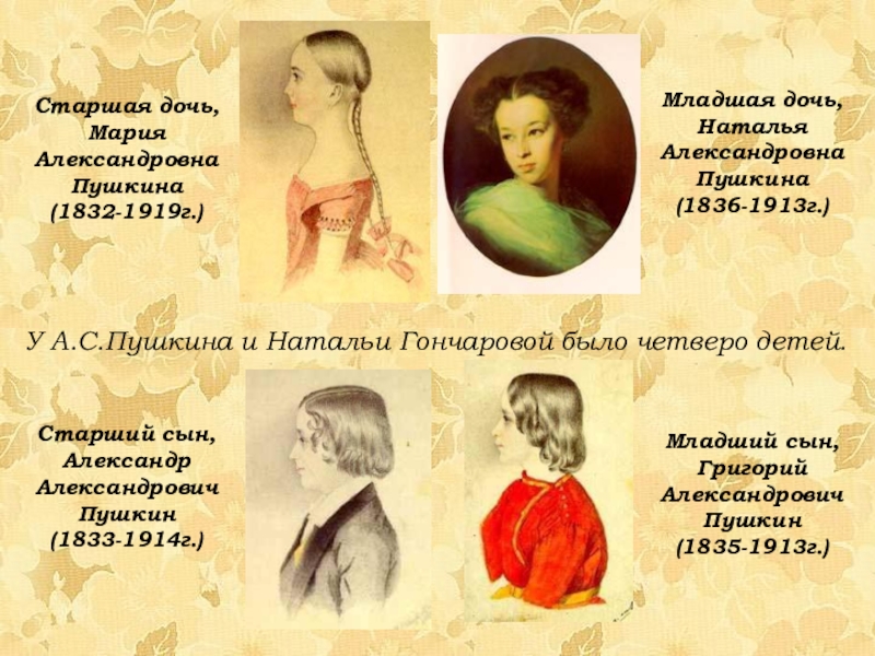 У А.С.Пушкина и Натальи Гончаровой было четверо детей.