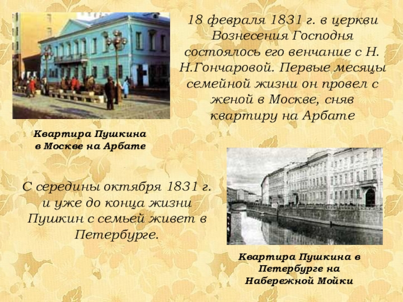 С середины октября 1831 г. и уже до конца жизни Пушкин с семьей живет в Петербурге.