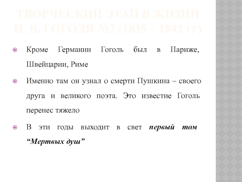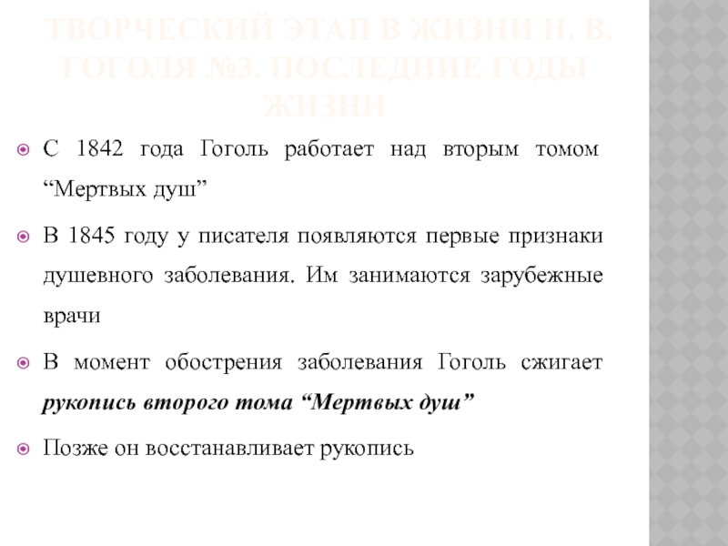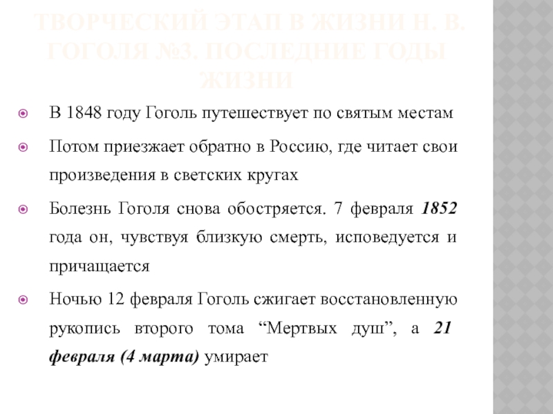 Слайд 21Творческий этап в жизни н. в. Гоголя №3. последние годы жизни