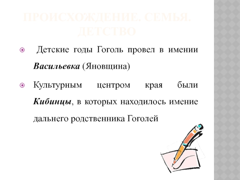 Предки Гоголя со стороны матери были помещиками. Со стороны