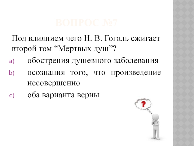 Под влиянием чего Н. В. Гоголь сжигает второй том “Мертвых