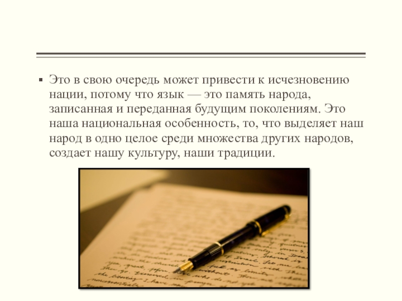 Слайд 10Это в свою очередь может привести к исчезновению нации, потому что