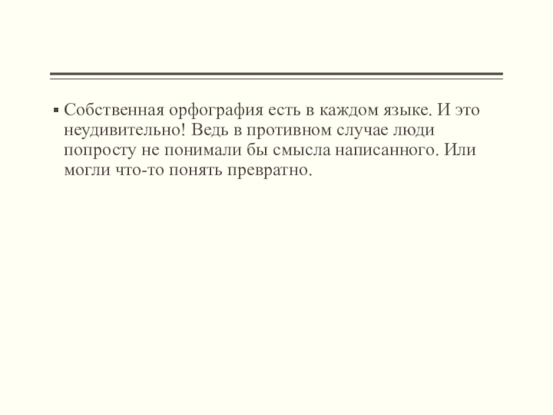 Слайд 5Собственная орфография есть в каждом языке. И это неудивительно! Ведь в