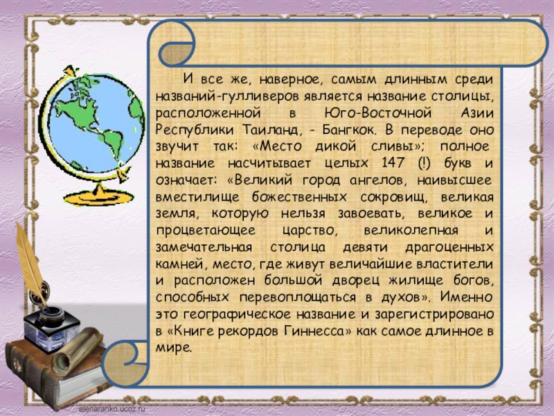 Слайд 4И все же, наверное, самым длинным среди названий-гулливеров является название столицы,