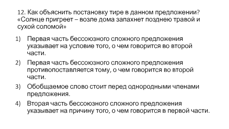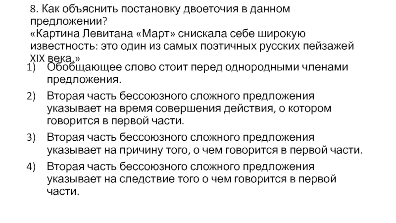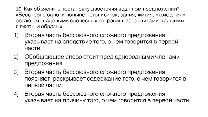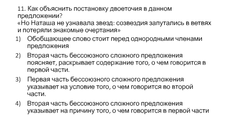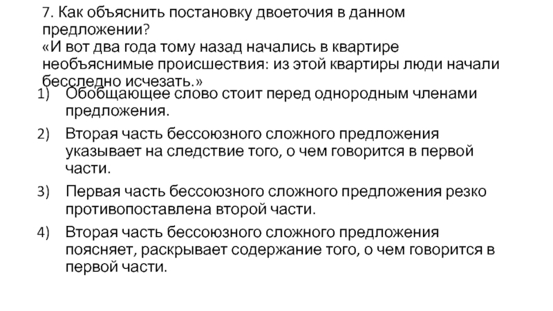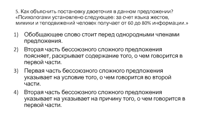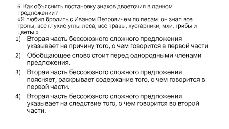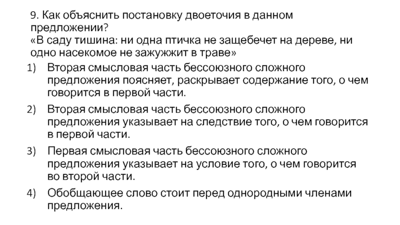 Вторая смысловая часть бессоюзного сложного предложения поясняет, раскрывает содержание того, о чем говорится в первой части.