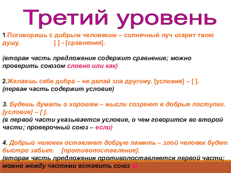 2.Желаешь себе добра – не делай зла другому. [условие] – [ ].