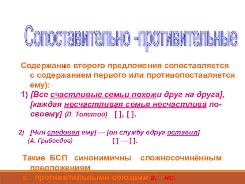 V. Сопоставительно-противительные отношения
