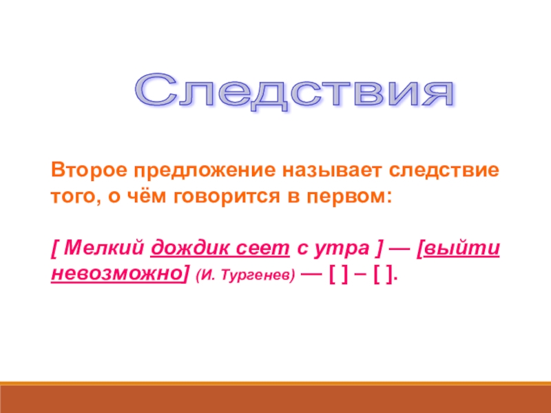 Мелкий дождик сеет с утра ] — [выйти невозможно] (И. Тургенев) — [ ] – [ ].