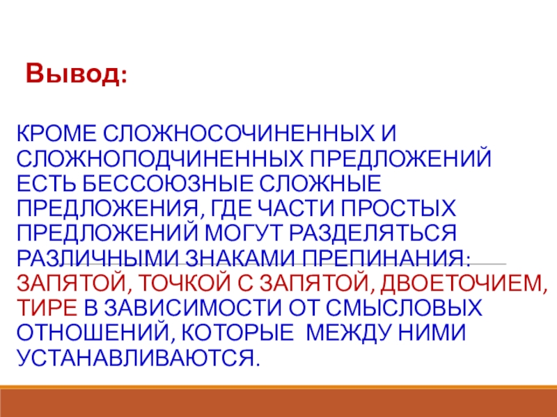 ЗНАКИ ПРЕПИНАНИЯ В БЕССОЮЗНОМ СЛОЖНОМ ПРЕДЛОЖЕНИИ