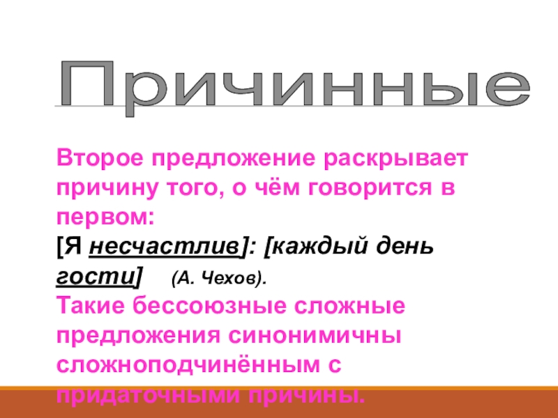 Такие бессоюзные сложные предложения синонимичны сложноподчинённым с придаточными причины.