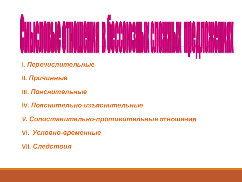 Смысловые отношения в бессоюзных сложных предложениях
