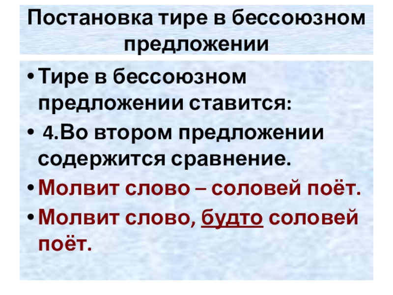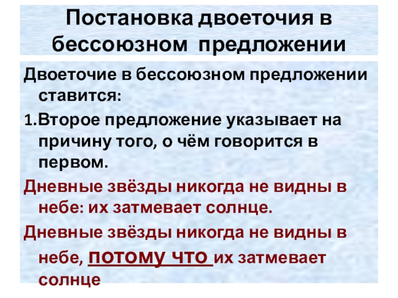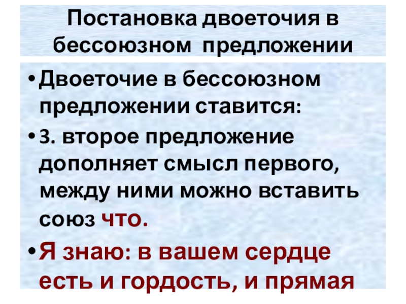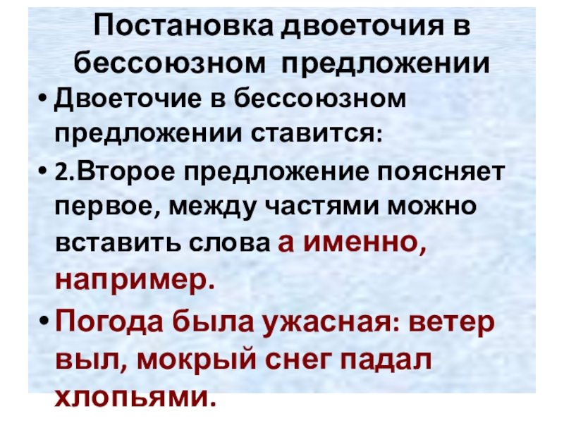 Слайд 6Постановка двоеточия в бессоюзном предложении