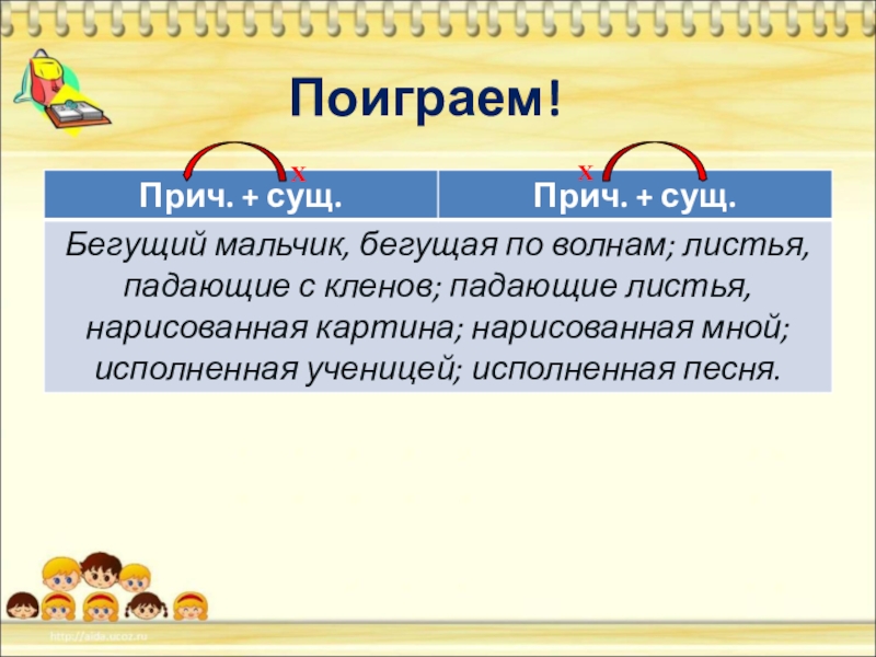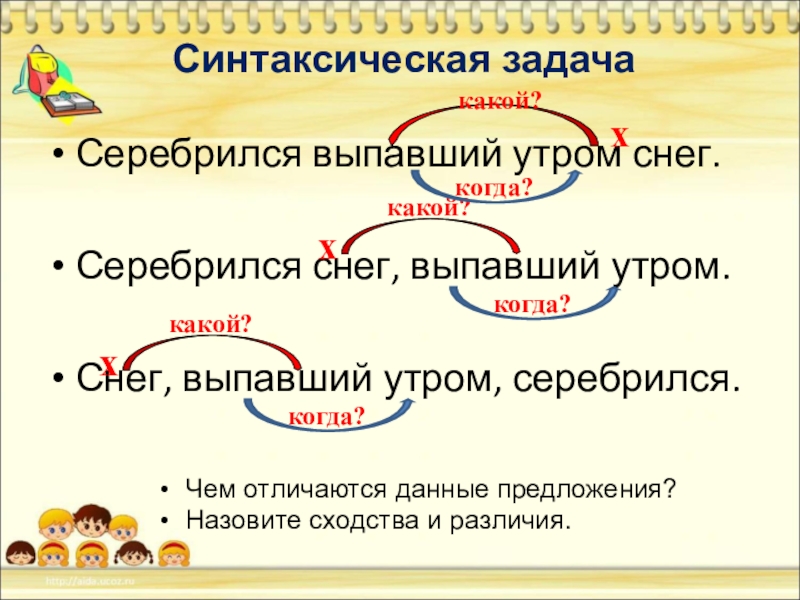 2. Над главными по отношению к причастиям словами поставьте знак «x» и стрелкой укажите, что от них можно поставить вопрос.