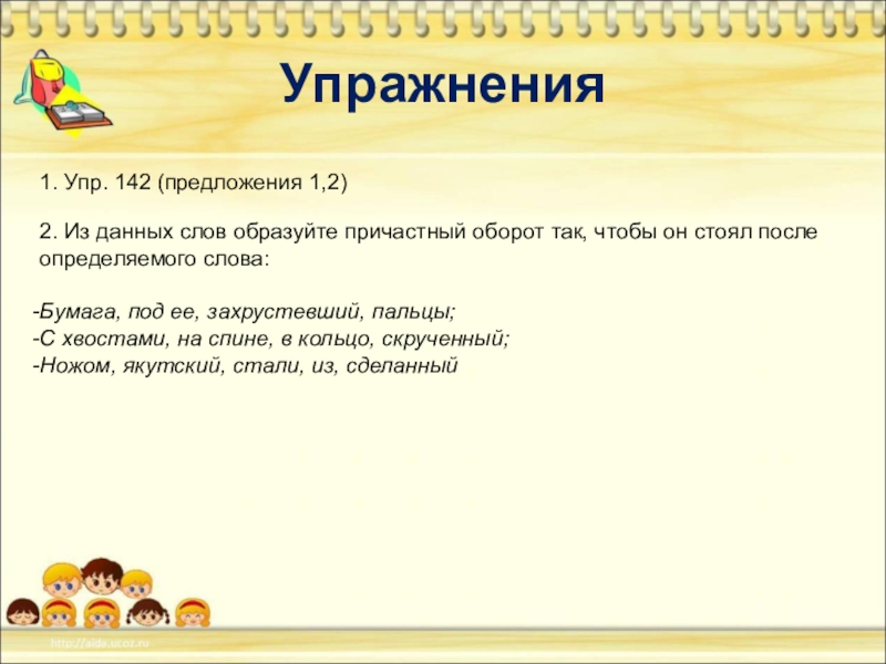1. В данном предложении найдите причастия и слова, к которым они относятся.