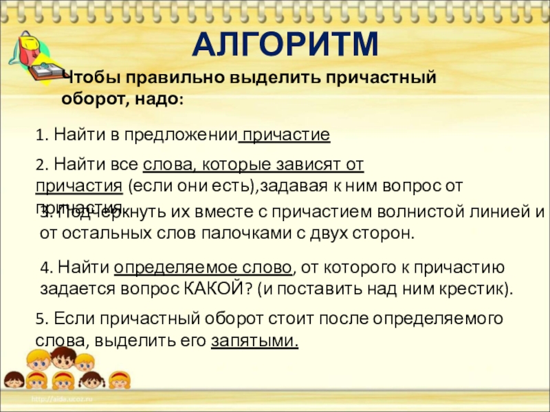3. Подчеркнуть их вместе с причастием волнистой линией и отгородить от остальных слов палочками с двух сторон.