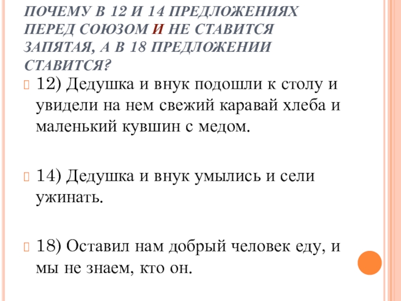 12) Дедушка и внук подошли к столу и увидели на нем свежий каравай хлеба и маленький кувшин с медом.