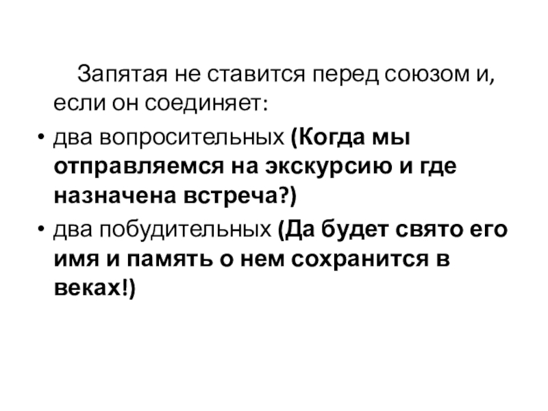 Слайд 4 Запятая не ставится перед союзами и, да(=и),