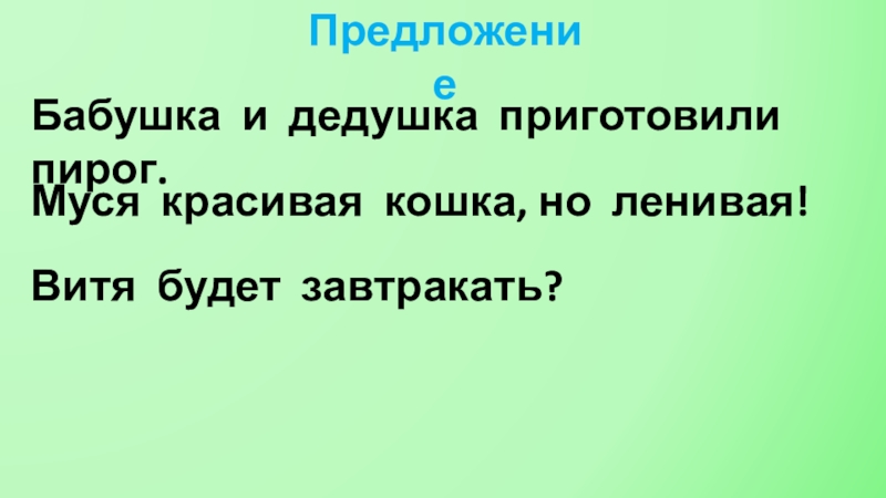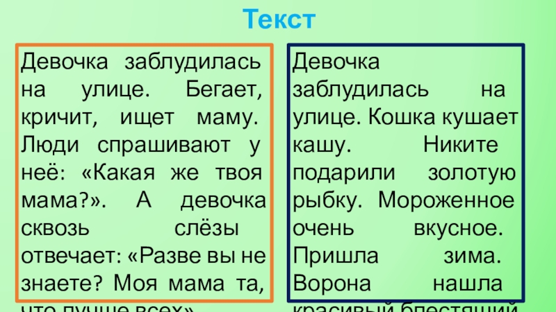 Девочка заблудилась на улице. Кошка кушает кашу. Никите подарили золотую рыбку. Мороженное очень вкусное. Пришла зима. Ворона нашла красивый блестящий фантик.