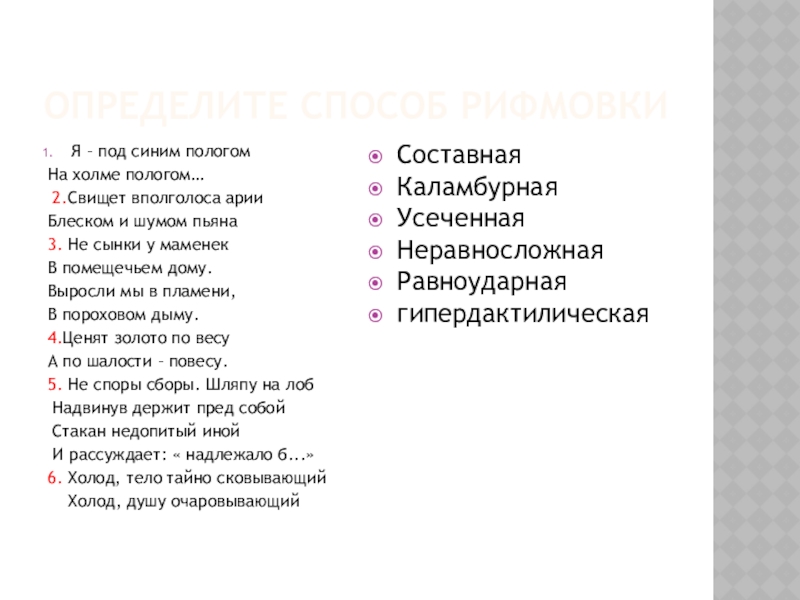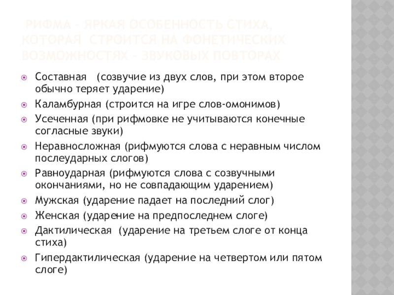 Равноударная (рифмуются слова с созвучными окончаниями, но не совпадающим ударением)