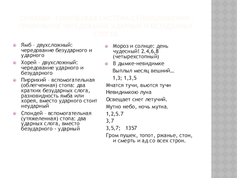 Спондей – вспомогательная (утяжеленная) стопа: два ударных слога, вместо безударного - ударный