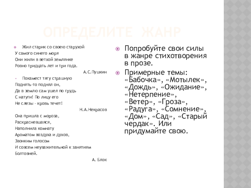 Попробуйте свои силы в жанре стихотворения в прозе.