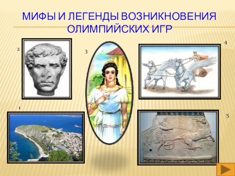 Слайд 5Мифы и легенды возникновения Олимпийских игр