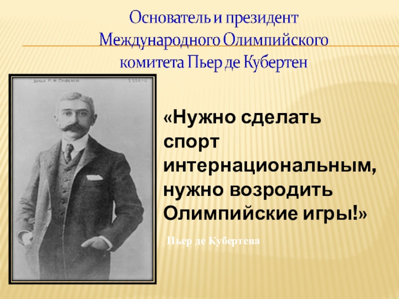 Слайд 32«Нужно сделать спорт интернациональным, нужно возродить Олимпийские игры!»