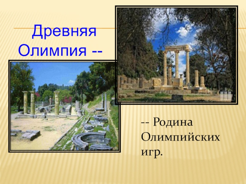 Древняя Олимпия ---- Родина Олимпийских игр.