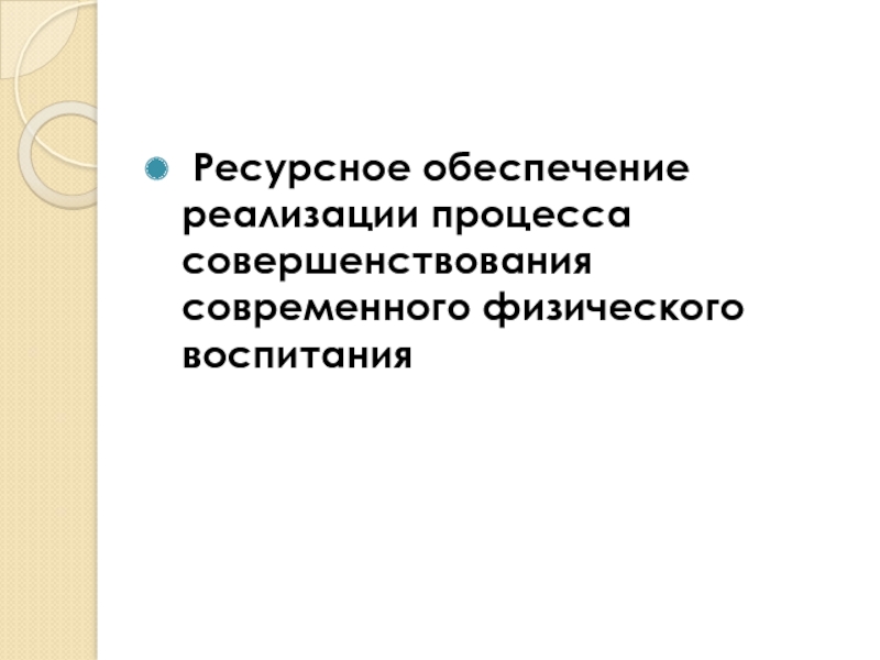 Слайд 28 Ресурсное обеспечение реализации процесса совершенствования современного физического воспитания