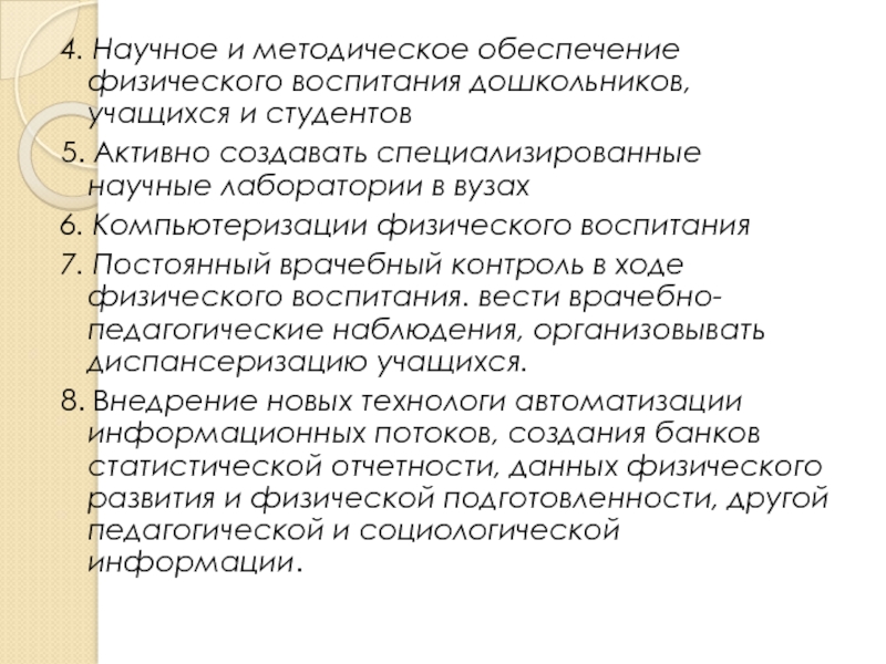 Слайд 304. Научное и методическое обеспечение физического воспитания дошкольников, учащихся и студентов