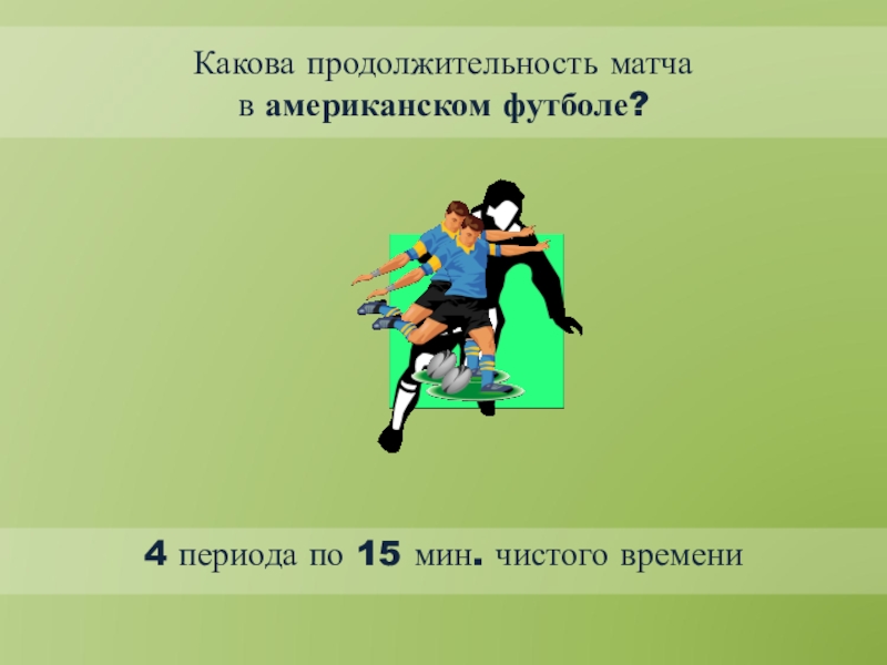 Какова продолжительность матча  в американском футболе?4 периода по 15 мин. чистого времени
