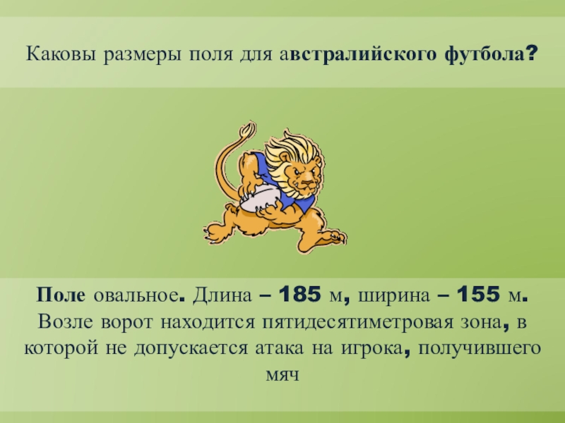 Слайд 8Каковы размеры поля для австралийского футбола?