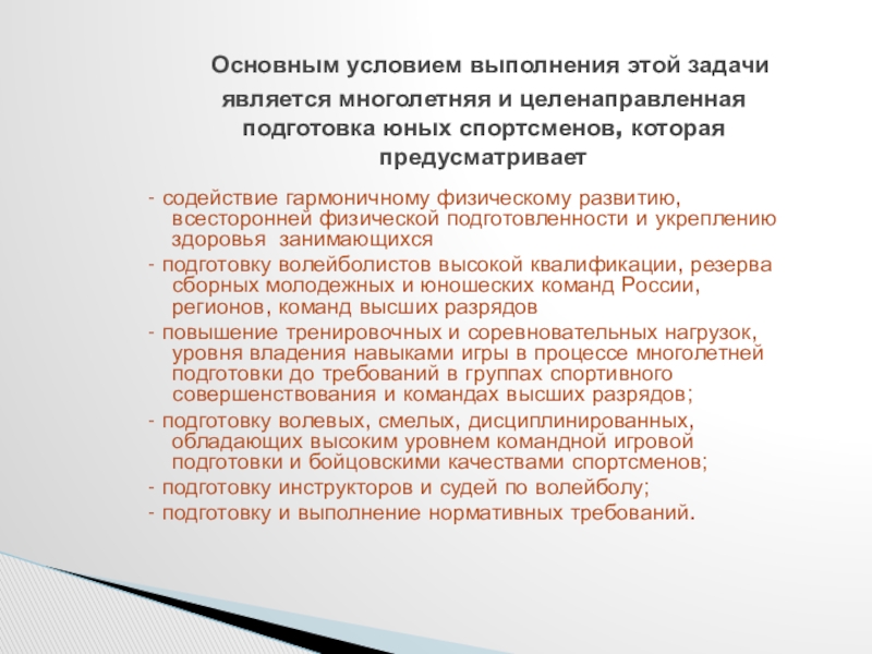- подготовку волейболистов высокой квалификации, резерва сборных молодежных и юношеских команд России, регионов, команд высших разрядов
